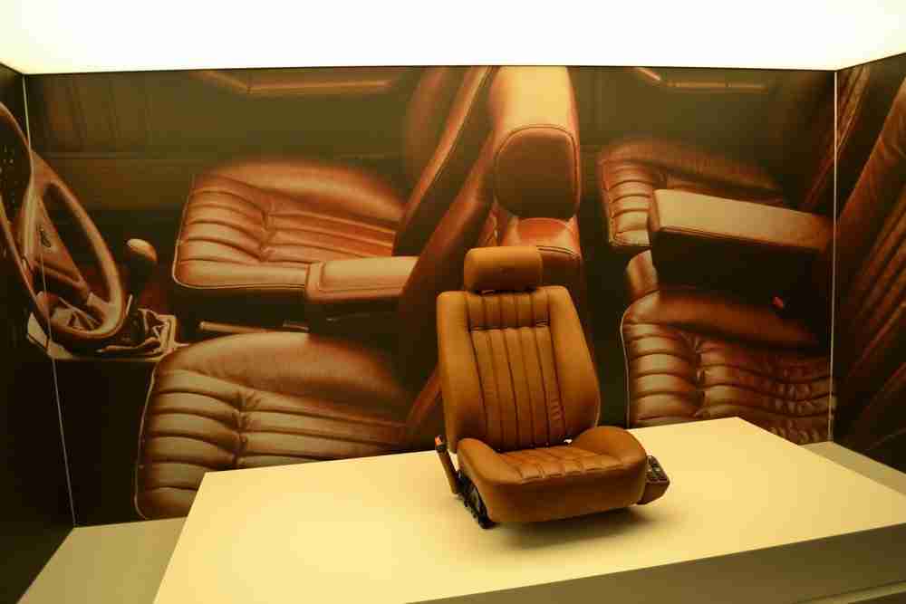 После экскурсии по музею, посвященной истории этой компании, участники были приглашены в мир автомобилей. Квадратная комната, где были представлены основные вехи деятельности компании в этом секторе: от обивки сидений и приборной панели автомобиля Thema 8.32 до недавних проектов для Ferrari, Fiat, Maserati и Volkswagen.